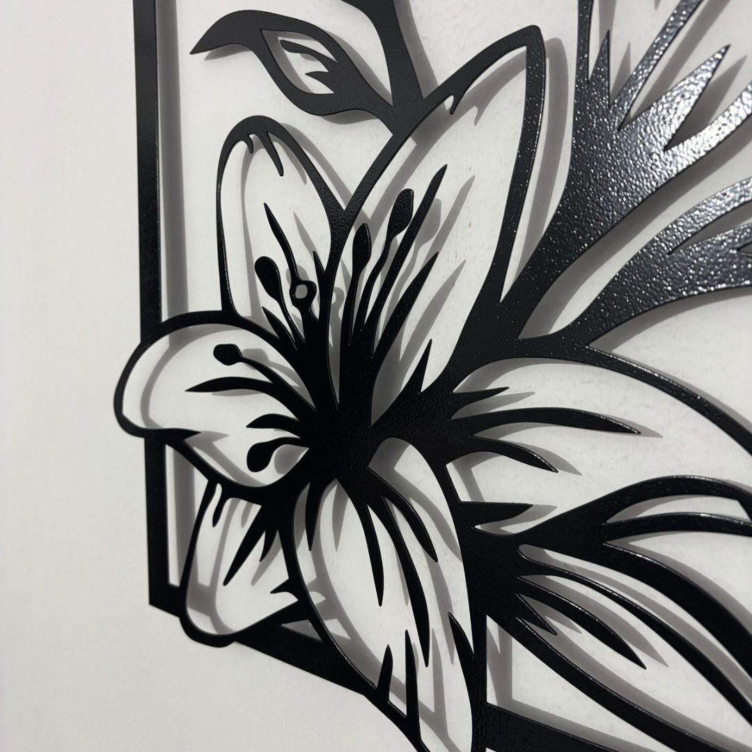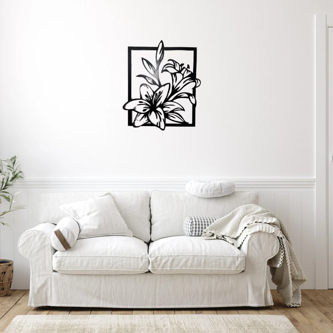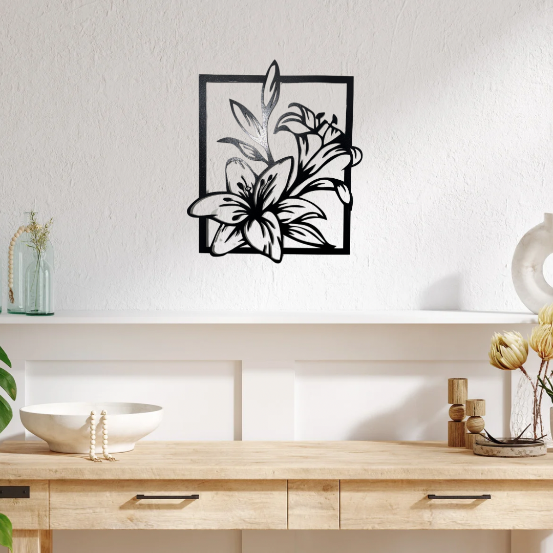 Enhance your space with the “Lily Grace” Metal Wall Decor, a beautifully crafted piece featuring an elegant floral design enclosed in a sleek frame. Made from high-quality metal, this decor piece showcases intricate lily flowers, symbolizing beauty and purity. The powder-coated finish ensures durability, resistance to rust, and a smooth, matte look that complements any modern or rustic interior. Perfect for living rooms, bedrooms, or outdoor spaces, this stunning artwork adds a touch of nature-inspired charm to your walls.